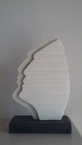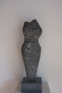 beelden in verschillende steensoorten o.a. serpentijn, marmer, Belgisch hardsteen en graniet.